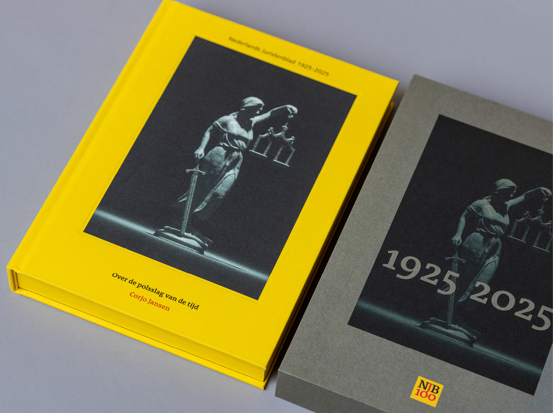 Het eerste nummer van het Nederlands Juristenblad (NJB) verscheen op 20 november 1925. Een eeuw later is het tijd om te reflecteren met een inhoudelijk boek, met een schets van de geschiedenis van het NJB over de afgelopen honderd jaar in al zijn grandeur en misère. Dé kleur van het NJB was aanleiding om een minimalistisch statement te ontwerpen. In warmgeel!Tot de kleur op snee aan toe. Het jubileumkarakter werd gevonden in het intergraal opnemen van het eerste gedrukte nummer en de bijzondere cassette om het boek. Het Nederlands Juristenblad 1925-2025. Over de polsslag van de tijd.